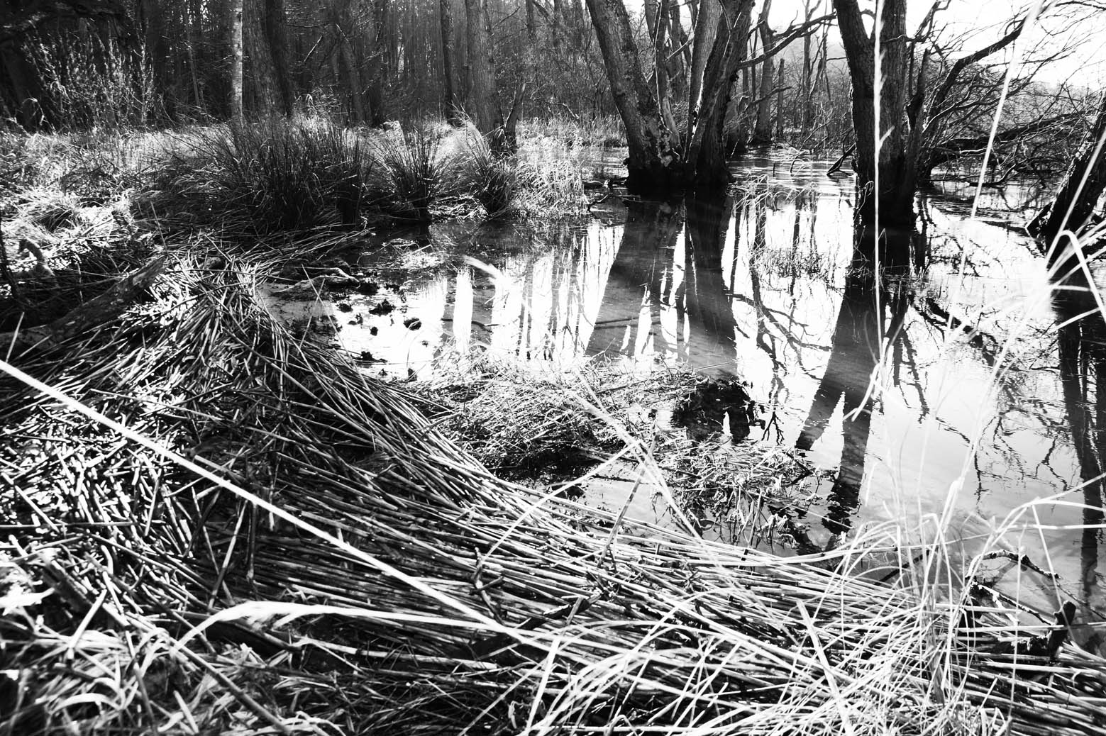 Hendes motiver kredser om naturens taktile, rytmiske og strukturelle kvaliteter: barkens overflade, siv i søens randzone og mønstre i visnet plantemateriale. Kontrasten mellem rodens mørke, rå, knudrede æstetik og staudernes lette, farverige fremtoning over jorden.