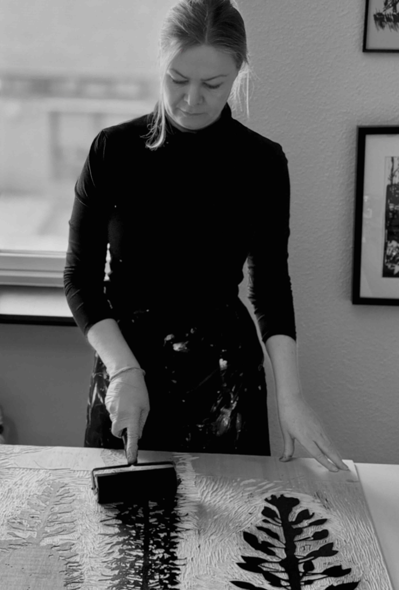 She approach each piece with a desire to capture the essence of nature's unspoken rhythms. The woodcut technique, with its layering process and tactile nature, offers her the perfect medium to delve into these structures. Through the physicality of carving and printing, she strive to reveal the unseen patterns that exist beneath the surface of the natural world.