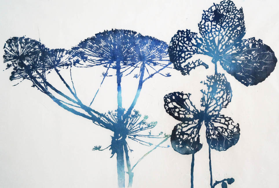 Jeg arbejder lige nu på en række nye værker, med udgangs punkt i motiver med plante rødder, fra min have. Metoden er træsnit.