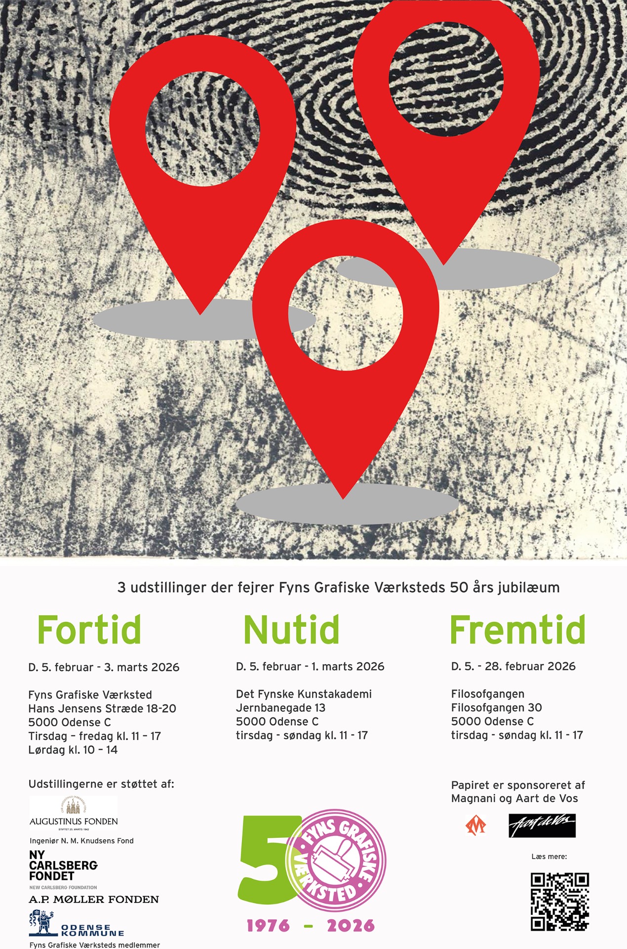 I februar 2026 deltager jeg i udstillingen "Nutid" som afholdes i den historiske skulptur sal, ved Det Fynske Kunstakademi i Odense. Udstillingen afholdes i forbindelse med Fyns Grafiske Værksteds 50 års Jubilæum.